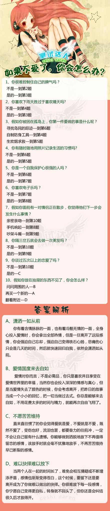 【导语】如果你的爱情结束了,你会做出什么不理智的行为吗?还是会很理性地理顺它?跟星座屋小编做个小测试,看看如果不爱了,你会怎么办?