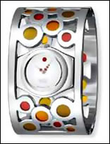 水瓶 MM 就是与众不同,凡事都要别出心裁,来个另类,连手表也不会放过,这款泡泡护腕淑女表就是为她们准备的。似手镯又似盔甲的独特外形,无论如何也不会令人联想到这是手表;一个个不同颜色的泡泡,宛如水瓶 MM 头脑中无数稀奇古怪的想法。