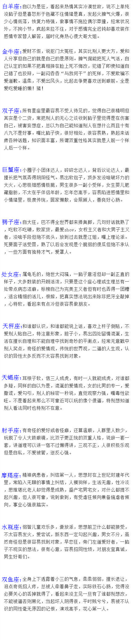【导语】星座分析,综合12星座的各种优缺点总结出来的12星座“贱人”特点。