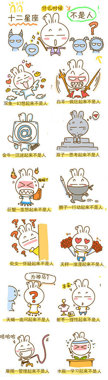 【导语】之前星座屋曾简要用文字谈过12星座的不是人行为,今天星座屋给大家带来漫画版的“12星座什么时候不是人”。