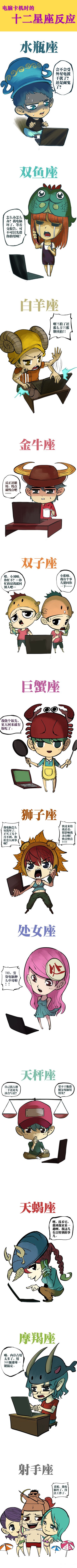电脑卡机时,12星座の反应