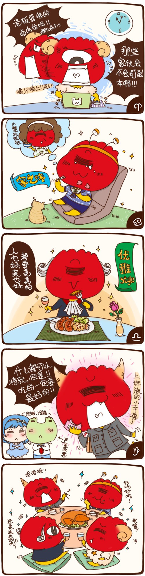 【导语】俗话说:民以吃为天。在十二星座里面,谁是吃货呢?你身边有这样的星座吗?现在跟星座屋小编一起来看看以下可爱漫画,揭秘十二星座到底谁是真正的吃货吧!