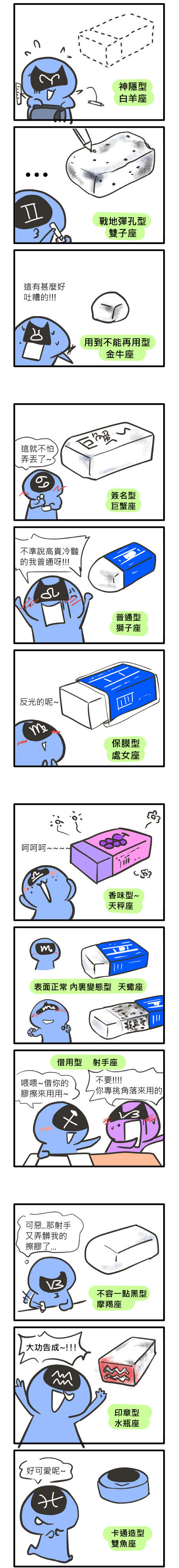 【导语】十二星座都附有各自不一样的性格特点,因此大家的待人处事方式都会很不一样。根据小编对星座的了解,只要看到一个人的做事方式,便能够知道这个人是什么星座的呢!不如来星座屋,随着小编一同欣赏以下的星座小漫画,来看看12星座使用擦胶的习惯是如何的吧!