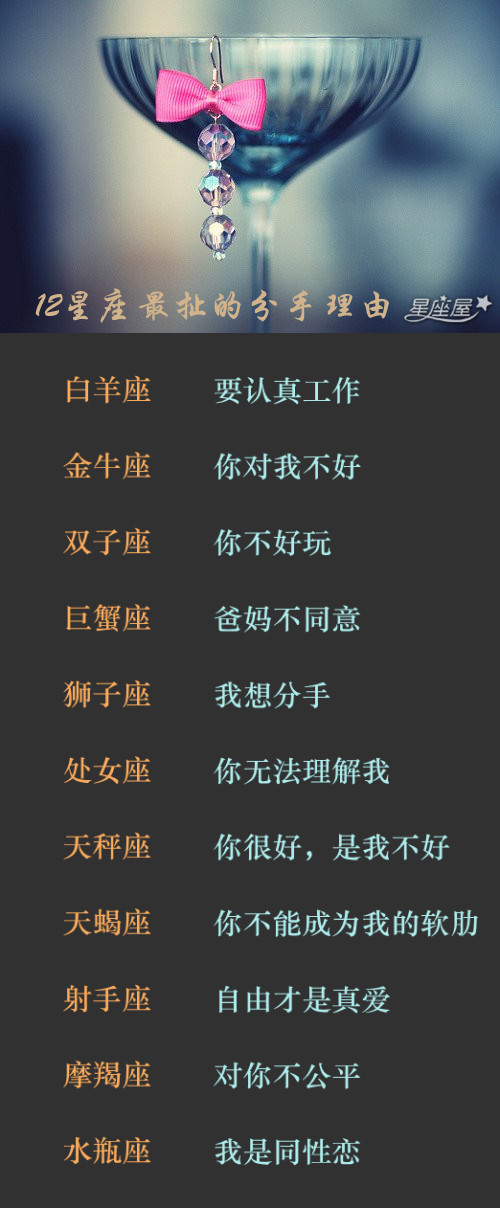 星座屋在这里给大家说说,12星座最扯的分手理由。里头有你听过的吗?