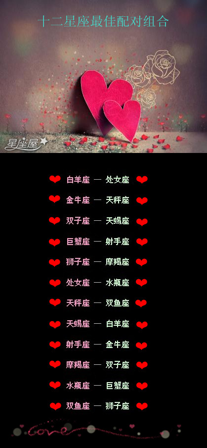 十二星座最佳配对组: