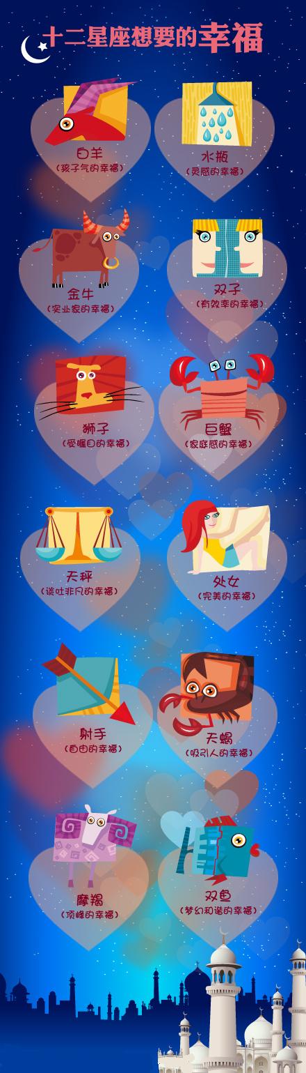 【导语】人的一生都在追求心中所想的幸福,而不同的人对幸福的理解都不相同。幸福其实就是一种感觉,这是一种情不自禁的发自内心的感受,这种感觉是一种心态,当幸福来临的时候,一切都是那么美好性格不同的星座们,当然对于幸福的定义都不一样,那么十二星座想要的幸福又是什么呢?