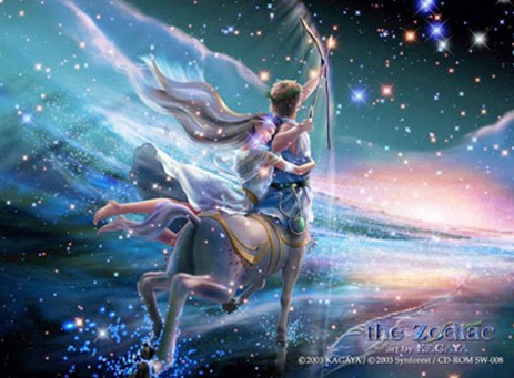 第二个传说就比较悲情一些,是在很久以前古希娜还存在的时候,人马族十分的强盛和凶猛。而人马族里有一个咯戎的却生性十分的善良,对朋友十分的坦率所以在族里相当的受人尊敬。一天当时伟大的英雄赫拉克勒斯拜访他的朋友,听说人马族相当的会酿酒,但这是人马族的共有财产,不是轻易喝的到的。所以便逼迫他的朋友偷给他喝,他朋友没有办法只能拿给他,当赫拉克勒斯喝的十分舒适的时候,酒的香气早已外露。人马族知道后特别气愤一直的斥责于他。于是便发生了一场激烈的战斗,而咯戎便在场战役中无辜牺牲,宙斯听到了那惨叫托起了咯戎的身体往天空一抛,他便变成了星星,成了人么口中的射手座。