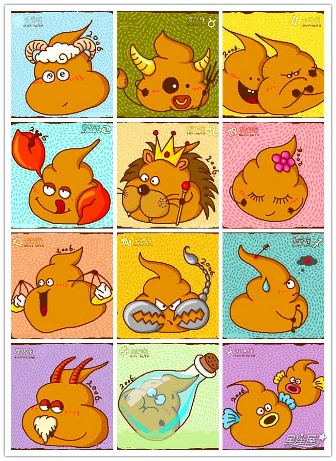 今天星座屋小编和大家分享的是一组十二星座图标的可爱“便便” 。“屎我系一督屎,花我愿化花香”这歌词是来之麦兜卡通篇里面的。 这可不是恶心的图标哦,是一族相当可爱的“便便”图哦!接下来我们一起来欣赏吧!!