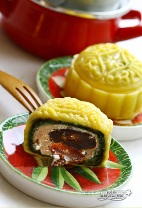巨蟹Mooncake---绿茶蜜枣芒果冰皮月饼