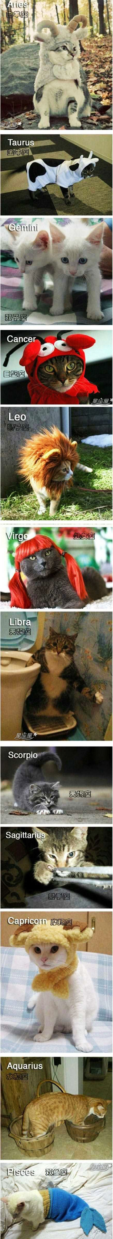 【导语】你们喜欢猫咪吗?喜欢帮自己的宠物打扮得精灵可爱吗?嘻嘻,让我们一起跟随星座屋小编去看看各种不靠谱的猫咪主人帮它们打扮成十二星座的样子,真实版的十二星座猫咪太可爱了!