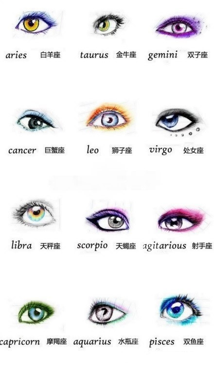 星座屋找来艺术家Slaughterose根据星座创作出的眼妆图表,有12星一般眼型和适合眼妆。看看你自己的眼睛类型是如何的?眼妆图表上有你类型的眼睛吗?找到你适合或喜欢的眼妆?还是说你喜欢你所属的星座匹配的眼妆呢?