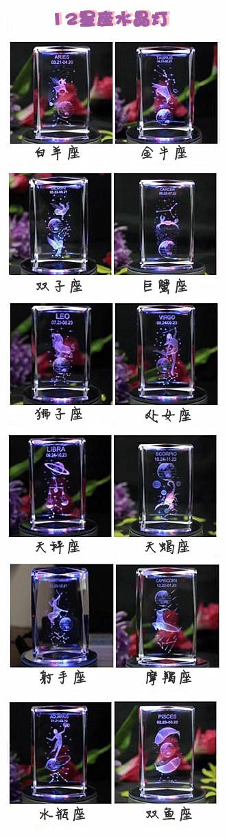 尤其情人的节日特别的多。是不是有为送礼物而感到烦恼了呢?可选的礼物其实有很多。今天星座屋就给大家介绍一下3D七彩发光旋转,晶莹通透的12星座水晶灯吧。