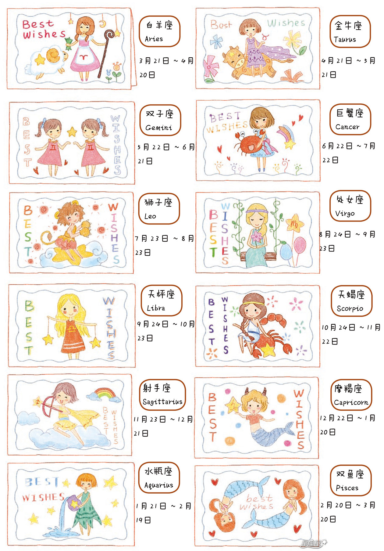 可爱手画12星座日期表