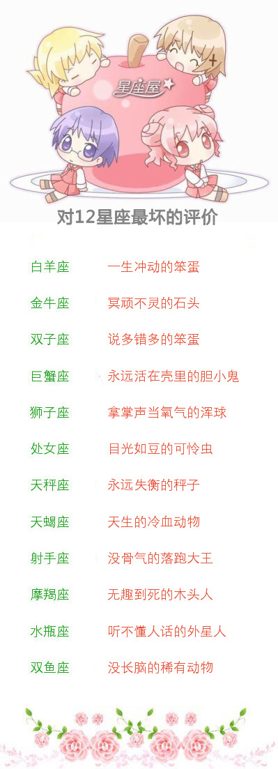 对12星座最坏的评价