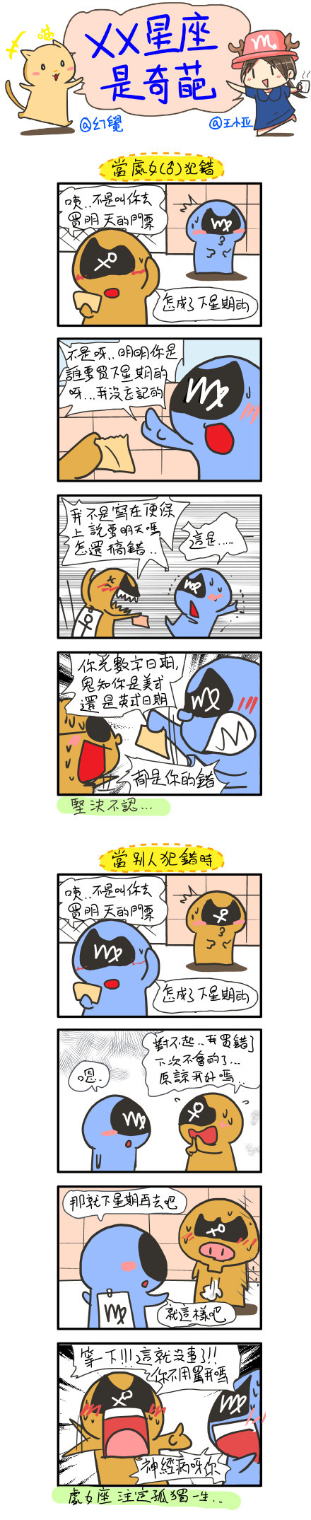 所以漫画中简单的一个别人犯错与处女犯错的最根本区别,处女有追求完美、倔强、不认输的性格,爱挑剔别人,却不容许别人说自己的不是。是一个极矛盾的“奇葩”星座。