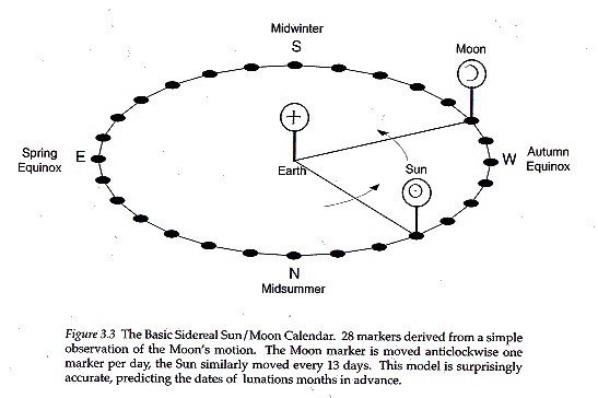 上图显示了埃夫伯里石阵通过在不同的位置摆放石柱来记录月相、预测蚀相的原理。你可以在上面找到代表春分、秋分、夏至和冬至的点,这是适用于全世界任何国家、任何社会的计时原理。