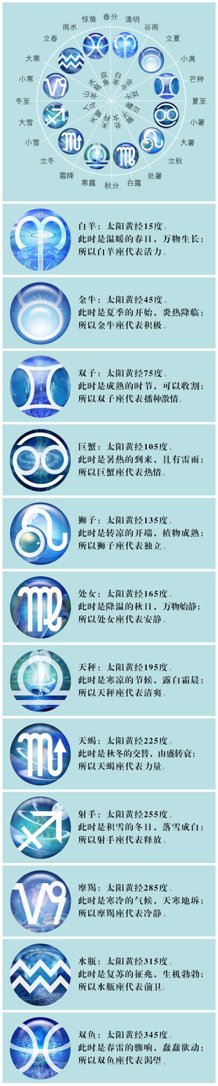 【导语】中国有自古流传的二十四节气,而西方有黄道十二宫,即12星座。你相信他们会有一定的联系吗?