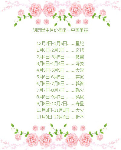 而星座也能按阴历(农历)推算的,其实,在中国古代就有阴历12星座的划分,也称中国星座。是根据你的阴历(农历)出生日期,找出属于你的阴历(农历)星座。可以根据星座屋提供给大家的阴历星座时间表查询一下。