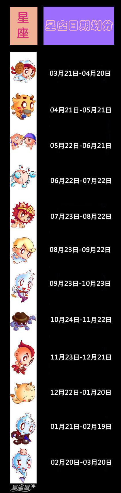 说说,12星座日期划分