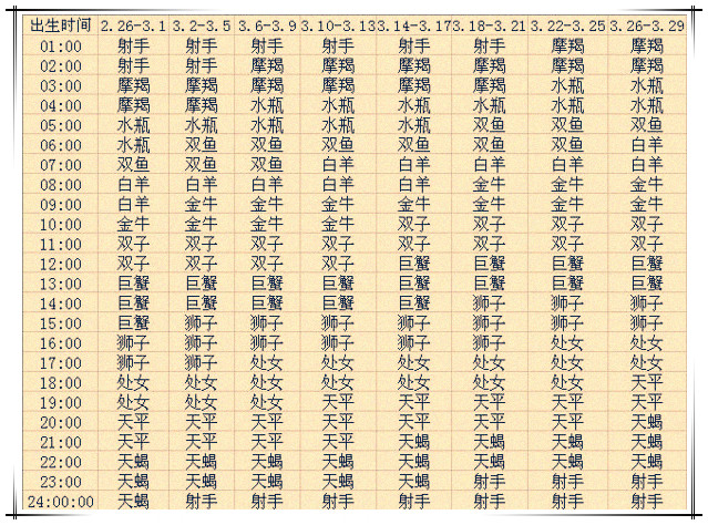三月出生的12星座上升星座查询表