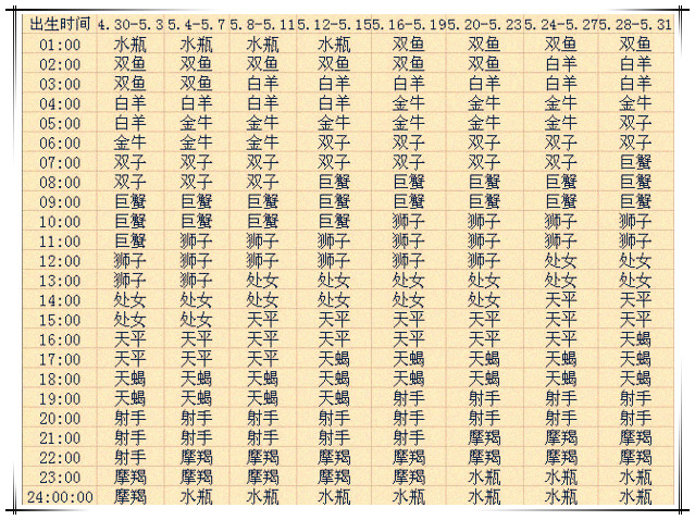 四月出生的12星座上升星座查询表