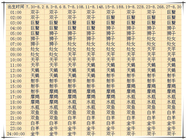 八月出生的12星座上升星座查询表