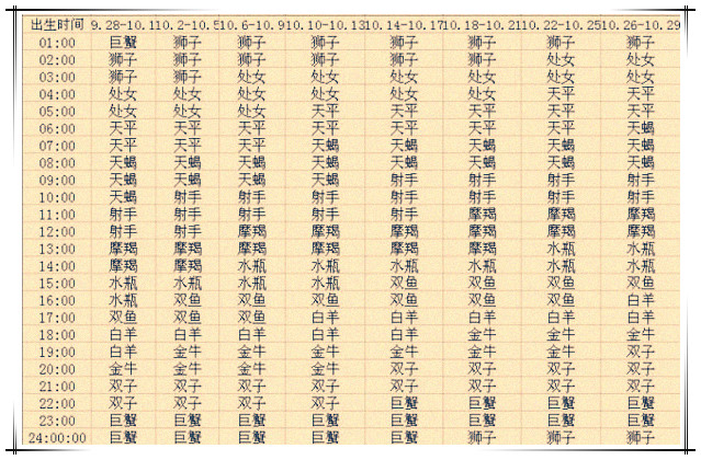 十月出生的12星座上升星座查询表