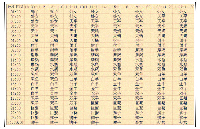 十一月出生的12星座上升星座查询表
