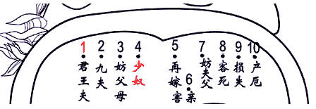 10、产厄:轻易在生养上出问题,难产或者有子宫类的病,或所以病死。