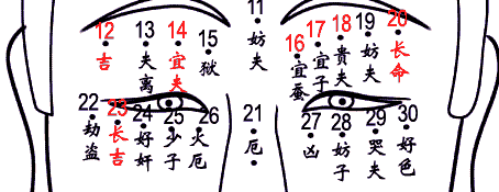 1.田宅:眉毛与冒晴之间为田宅宫,如得善痣,宜长在中间,不要靠近眼头或眼尾,可得固定资产,如再有宽广田宅,清秀端正,能实力的帮助,有利物质运及社交运,工作运,如果为恶痣,不但命运与以上所说相反,而且,女性易为情所因,不易妇得好丈夫,同时也不利家庭运。如果在靠近眼睛,当其部位痣气色不佳时,则主刑狱。靠近眼尾,其部位称鱼尾,可与鱼尾上的痣同论。