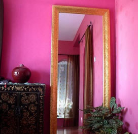 4.对女性来讲,梳妆的镜不宜冲门,因为在进入睡房时容易被镜子的反影吓坏,梳妆镜不要照床头,否则,容易做恶梦或精神欠佳。