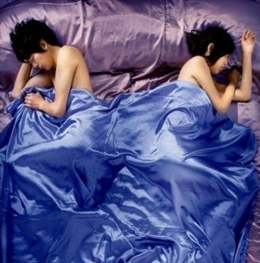 第五种:阳阳遥对式: 这种姿势为男女侧卧,各朝一边,中间留空,背对背睡,为阳阳遥对,表示气场不顺,相互排斥。出现这种情况,则表示已有矛盾,或正在冷战,或者已经同床异梦,或者已经各有寄托。感情危机已经比较严重了。如果再不沟通一下,可能就要分崩离析了。 这种睡姿的另一种表现,就是阴阴相对式,也是男女侧卧,各朝对方,中间留空,面对面睡,情形与阳阳遥对类似,但问题程度稍微轻一些,缓和的余地也比较大一些。