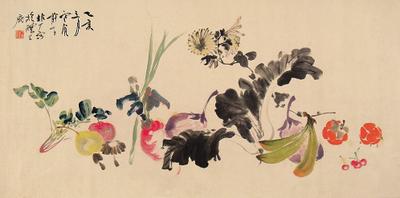 菜根切莫多油煮,留点青灯课子书。果蔬画非常适挂在餐厅中。 葡萄画