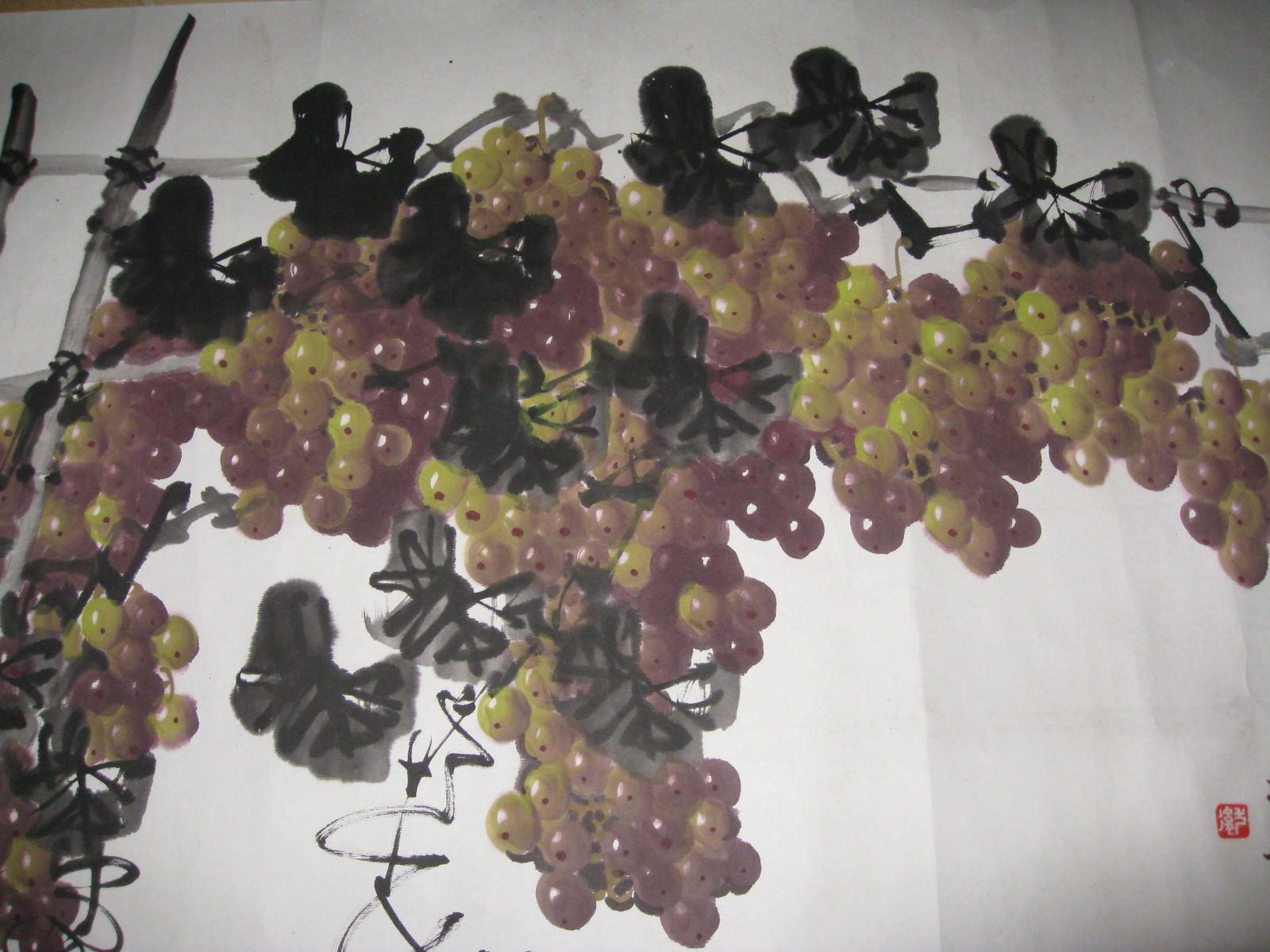 葡萄画是家居字画装饰中常见的吉利风水字画,而且丰满的葡萄画常常寓意丰收,挂在餐厅内非常合适。
