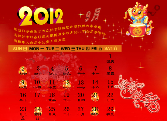 龙年阳历9月适宜婚嫁日