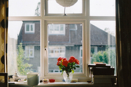 3、卧室窗边,摆放花朵