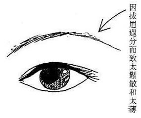 6、扫把眉 上述眉毛,常令其人在三十至四十岁期间运气不佳,处处受制於人和事,这很大程度是由于性格上的缺点所引致的,只要改好性格,或许会有一些生活上之改善的。眉毛在面相上虽然重要,但还要看五官都是及不上眼睛来得重要的,若然一双眼睛生得不好,就算眉毛怎样有势或清秀,也是一事无成的,但眉毛略为欠佳,双眼却藏神,清晰照人,此人的人生便有很大的转变,只是在情绪上有一些过敏性的缺点而已,始终也是个成就很高的人呢,因此见到人眉生得不好,千万别乱说一通,必须配合整个面相来分析。 |