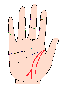 婚姻线又名“爱情线”、“结合线”,在水星丘侧(小指根部掌边)。感情线上方,所刻划的短短横线,有时出现几条,但以最长最明显的一条为准,不过,除本线外尚须参考其它部份,决不可因结合线不好,便一口断定结婚运欠佳。 要知结婚运必须有健康,金钱,智能互相配合,同时还得遇到机会,因此务必要参照感情线,智慧线,生命线三大线条,才能预知结婚或与异性之关系。 婚姻线暗示了一个人的恋爱过程,何时结婚,婚姻会不会美满,会不会离婚、再婚,或是有婚外情。还有,它所透露出的男女关系,也不一定是指法律上的婚姻关系,“同居”也算。 |