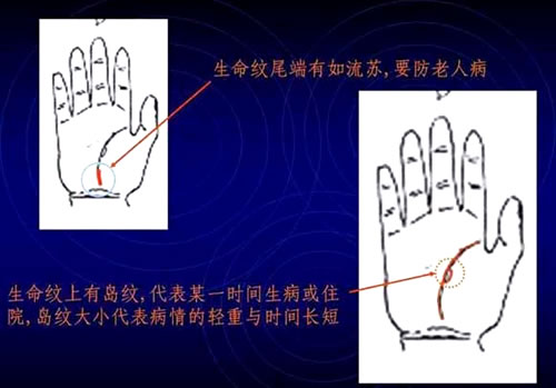 生命纹包围的掌丘范围大的,也是精力充沛,爱欲旺盛;范围小的嬴弱,容易疲倦