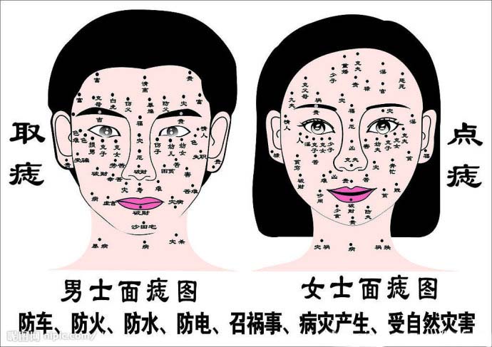 分享,脸上长痣的面相图文解说