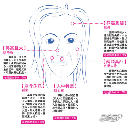 【导语】为什么现在社会统计,会有这么多“剩女”,导致不平衡呢?未婚的女人,都生怕自己以后都会嫁不出去。那么你会变成社会中下一个“剩女”吗?不如现在跟星座屋专家一起来学习“剩女”面相图解吧!快点来看看,自己有没有躺着也中枪喔!