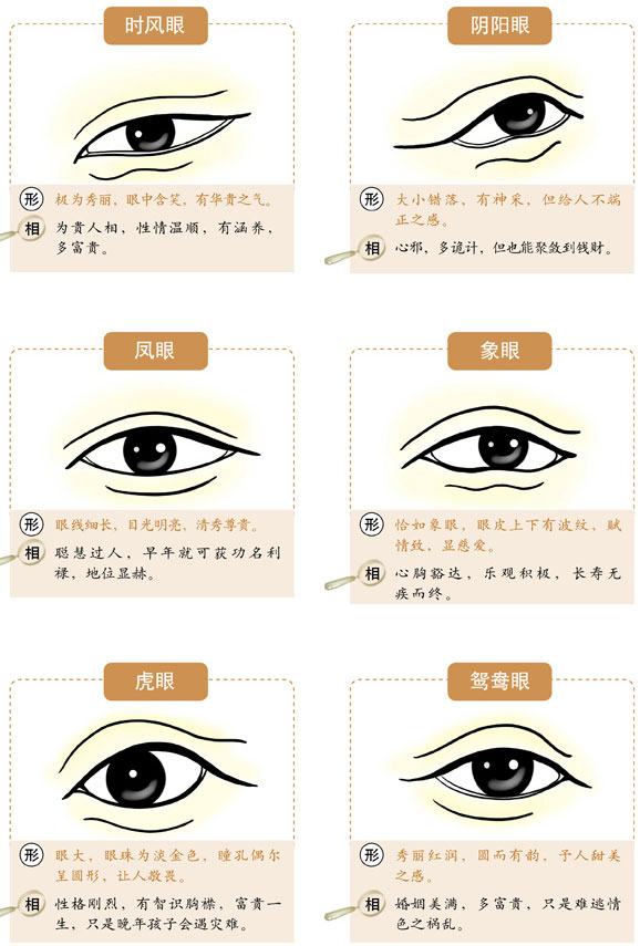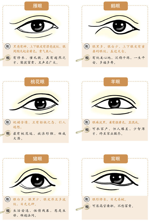 【导语】人和人之间的交流是通过彼此的眼睛,来观察到对方的各种变化,眼睛黑白分明能够反应出一个人的心境。现在跟星座屋小编和一起学习图解眼睛面相风水,里面有各种不一样的眼睛,来找出属于你眼睛的面相风水吧!