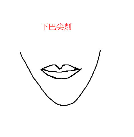 下巴尖削的脸,比较常在女性身上看到,俗称瓜子脸,由于这种脸型迎合了现代人的审美观,因此常得异性喜爱,年轻时的运势是左右逢源,颇吃得开,但是这种下巴,晚年运势平凡,因此年轻时须培养节约储蓄的观念,钱不可使尽,且心存厚道,晚年才得以安然地颐养天年。若下巴不只尖削,还同时后缩的话,稍稍后缩是OK,表示个性谦和淡泊,不与人争,若下巴后缩明显严重,表示脑部发育不完全(面相是人体五臟六腑形于外的展现),且个性太过敏感,常会做错决定,晚年辛苦,要把神经练得大条一点。