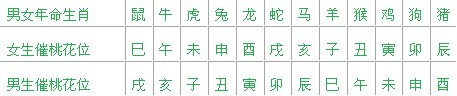 附:男女生2012年催桃花位查对表