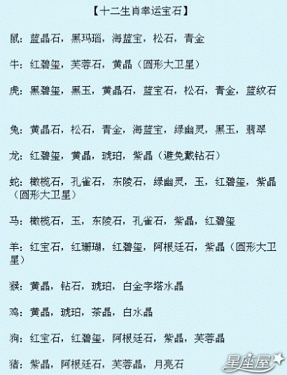 - ·带给12生肖的lucky宝石
