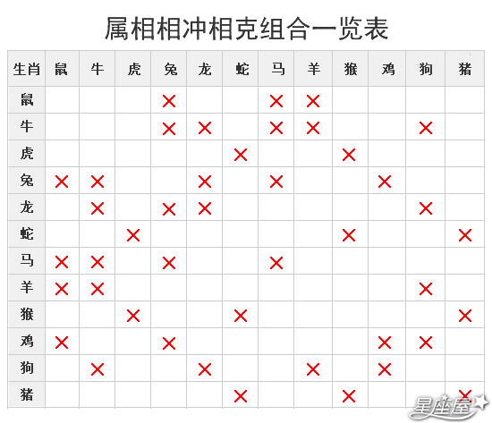 十二生肖的属相相克表