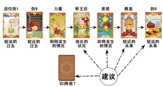 他的切牌是星7,表示问卜者预感到财运即将降临,心里急于知道结果。