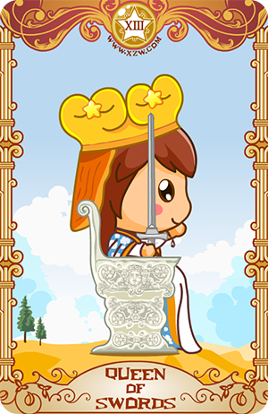 宝剑皇后是一张思索感情的牌。它可能意味运用心智到情感中的行动,好让感觉有意义。作为某个问题的答案,宝剑皇后暗示透过清晰思考而获致成功。