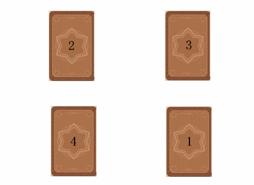 3、重复上面的动作两次,分别会得到两张牌,依顺序放到(3)及(4)的位置。