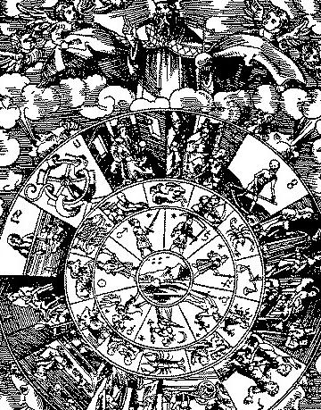 16世纪德国艺术家舒恩(Sch?n)绘了木版画占星图。见下图。